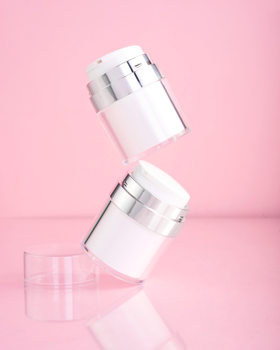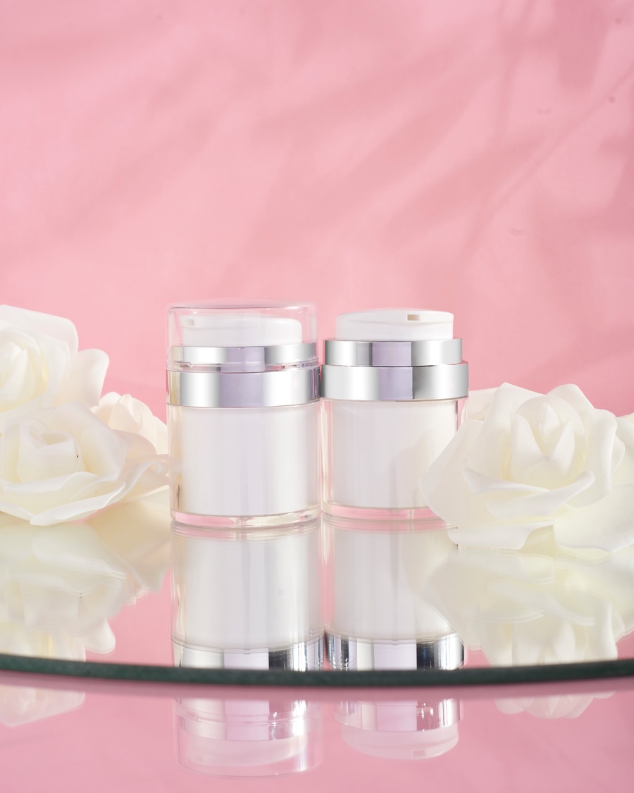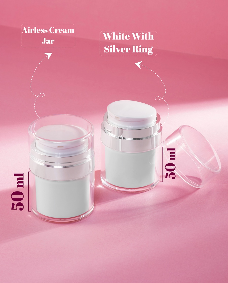 Airless cream jar with a silver ring that keeps skincare formulas protected, clean, and contamination-free while offering reliable, hygienic packaging